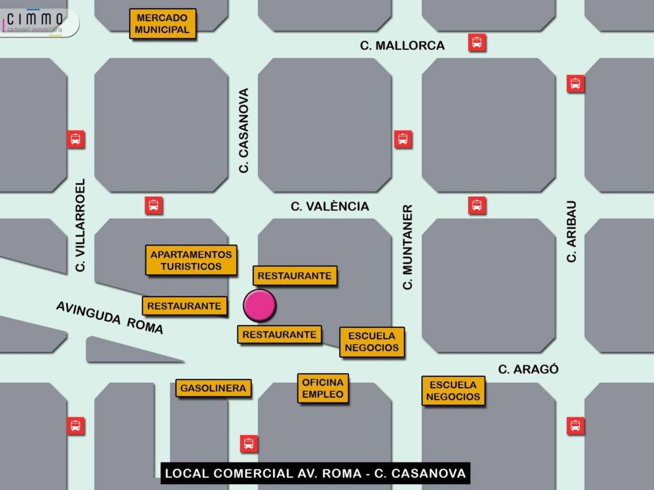 Local comercial en el Eixample izquierdo: Avenida Roma junto c/ Casanova y c/ Aragó. Zona comercial y céntrica. En buen estado. Situado en planta baja a pie de calle. Apto para tienda o pequeña oficina. Su última actividad comercial ha sido como floristería. Zona de mucho paso y afluencia ya que junto al local hay restaurantes, bares, una pizzería, una farmacia…. Tiene una superficie construida de 33 m² (30 m² útiles), con 5 metros de ancho por 7 metros de fondo. Está distribuido en una sala diáfana de 19 m² totalmente exterior, una zona de trastienda de 7 m² y un aseo de 2 m². Dispone de dos amplios ventanales a la calle Casanova: uno es la puerta acristalada de acceso y el otro un escaparate de unos 2 metros aproximadamente, con mucha visibilidad del interior del local. Techos altos. Altillo de 6 m². Suelos de parquet y gres. Cierre mediante dos persianas metálicas automáticas.. La finca de aspecto elegante, fue construida en el año 1940 y tiene servicio de conserje. Muy bien comunicado por las líneas de autobuses que circulan por c/ Muntaner y la c/ València (H10, X1, 59 y 63). Etiqueta de calificación energética: C. Condiciones: Fianza de dos meses. Se requiere solvencia demostrable mediante nómina o renta. Ref. L-2012